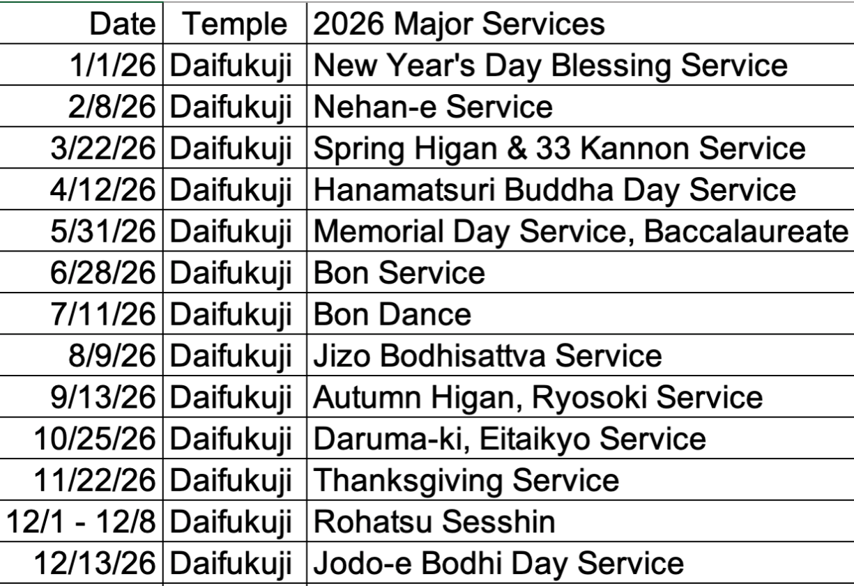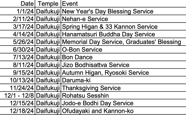 Daifukuji Soto Mission Major Events and Services